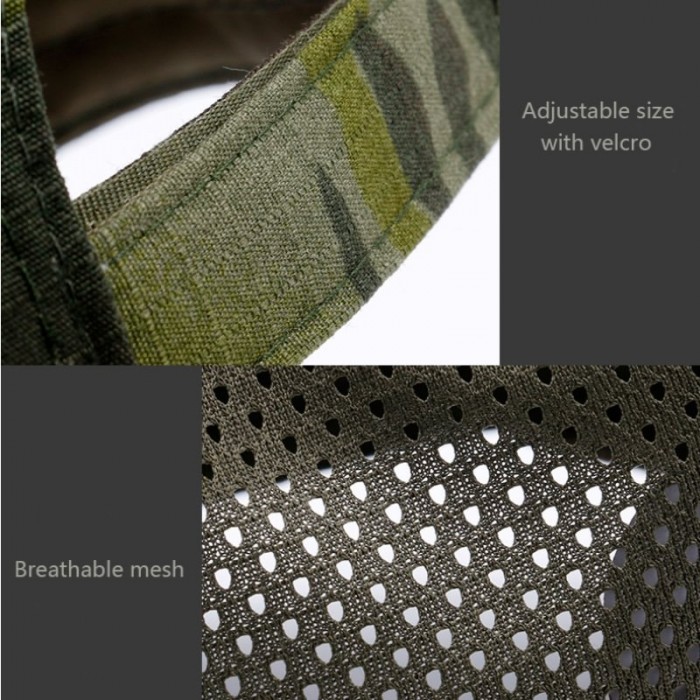 Made of 65% Polyester, 35% nylon, Adjustable, perfect for most people's heads. It has very good air permeability, lightweight and comfortable to wear. Perfect for wearing while gardening, at the beach, park, military training,camping, hiking, race day events, even out in your own back yard Or any outdoor activities.